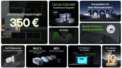 Ausgangsleistung (On-Grid): 800 VA (per App bis 2000 VA einstellbar)